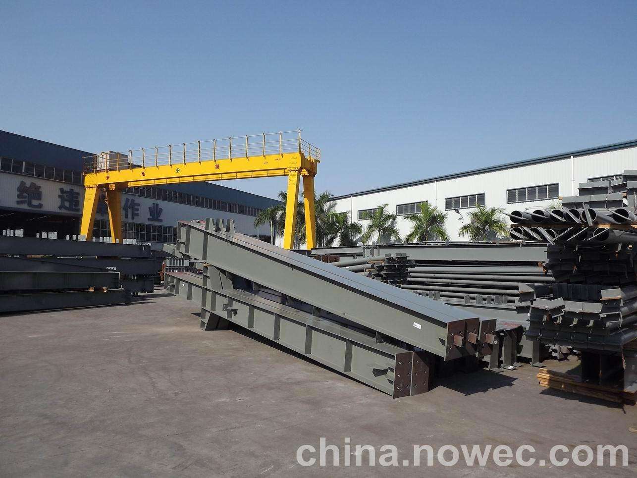条状单元一般沿长跨方向分割,其宽度约为1~3个网格,其长度为l2或l2/2(l2为短跨跨距)。块状单元一般沿辉县网架平面纵横向分割成矩形或正方形单元。每个单元的重量以现有起重机能胜任为准。条(块)与条(块)之间可以直接拼装,也可空一网格在高空拼装。由于条(块)状单元是在地面拼装,因而高空作业量较高空散装法大为减少,拼装支架也减少很多,又能充分利用现有起重设备,故较经济。这种安装方法适用于分割后网架的钢度和受力状况改变较小的各类中小型网架,如两向正交正放四角锥、正放抽空四角锥等网架。